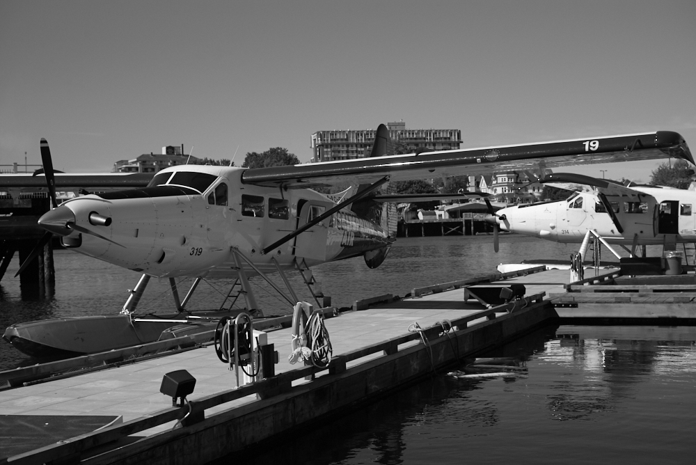 Seaplanes — DeHavilland Canada DHC-3 Turbine Single Otters — use the gullet of water between Fisherman's Wharf and West Victoria as a runway, lifting passengers to remote destinations across the province. When the pickle boats have cleared the flight path, the pilots run the throttle in to the stops. The turbine engines growl, and the planes leap up on the step, floats hydroplaning across the waves as they rocket forward. A skip, a long hop, and they are away, growling out over the Strait of Juan de Fuca. Before their wake settles, you hear the drone of incoming traffic, and another Otter drops smoothly into the freshly-vacated space for a landing.