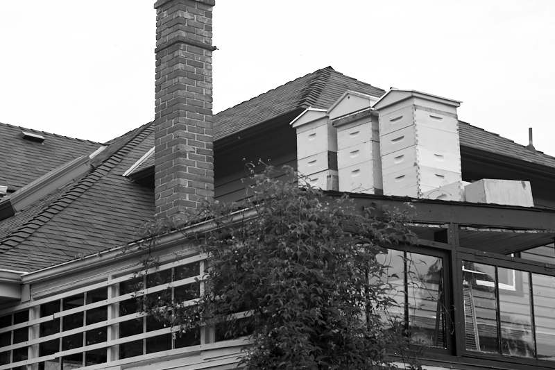 At Banfield Park, the Galloping Goose crosses a trestle bridge, leaping to the other side of the harbor. We opt for a different route, departing from the trail to walk through quiet suburbs. The residents of Victoria, although firmly lodged in an urban setting, still maintain some country practices, an observation clearly buttressed by the beehives lodged on the roofs of select homes.