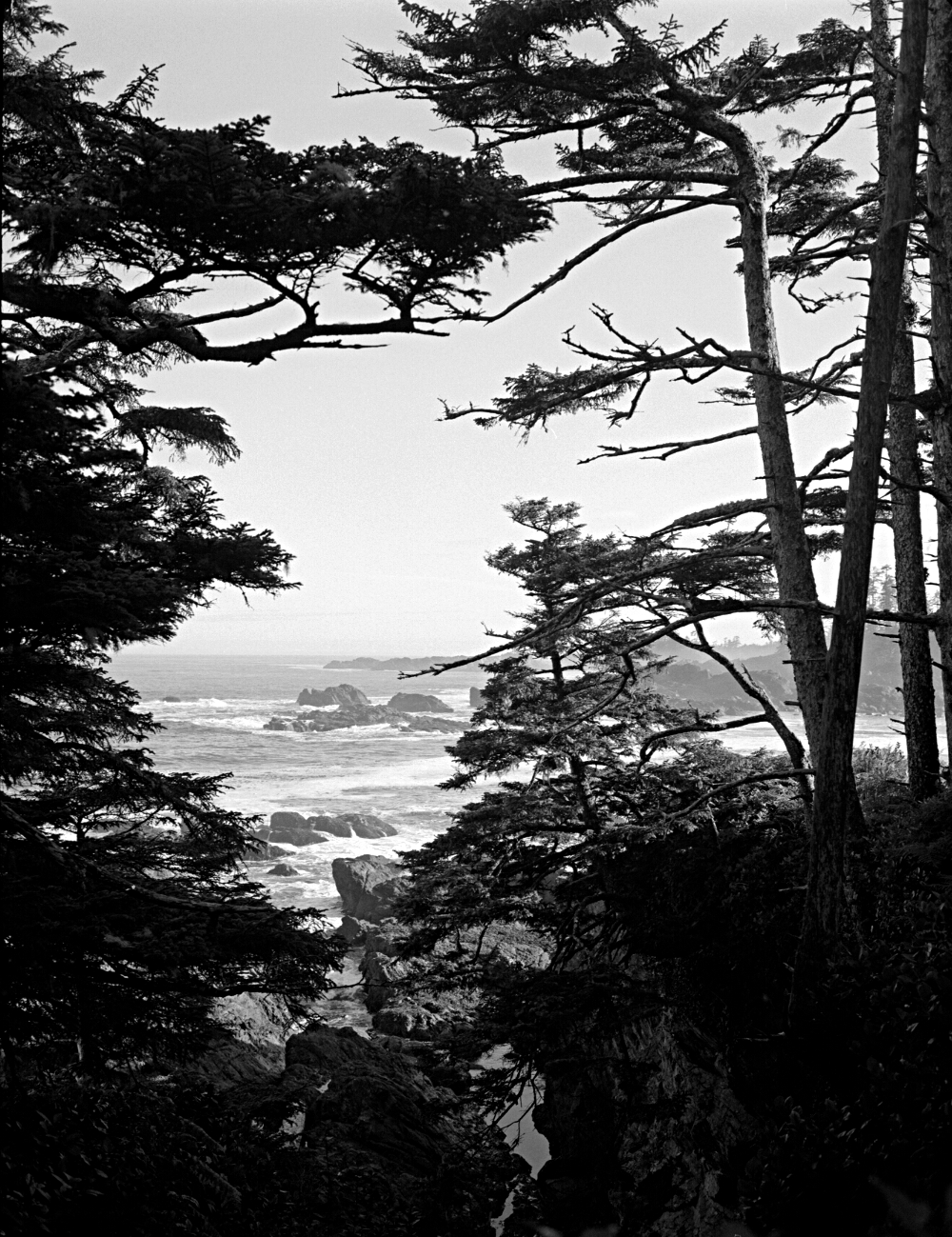 The Wild Pacific Trail makes a loop through a grove of these trees. Spaced among the lesser Spruce and Hemlock, these giant denizens climb out of sight above us. It is amazing to place one's hand on a living being that was probably alive before the first Europeans reached these shores, and will probably still be living centuries from now when I have long passed out of the world's memory.