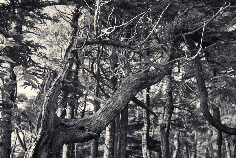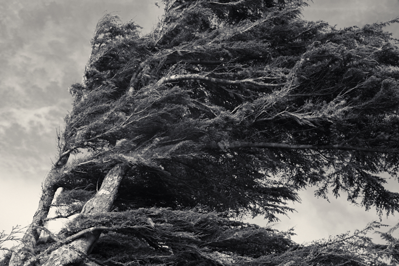 The harsh environment also has a profound effect on the trees. Wind-scoured and fell-blasted, the Spruce have been twisted into fantastic shapes by the relentless onslaught of sea and storm. Foliage is stripped from the windward side of the trunks, while on the leeward, long branches stream away like hair before a blow-dryer.