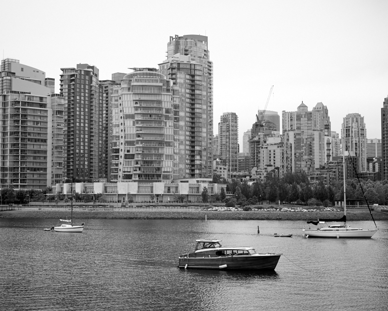 We did manage to find an open coffee shop, so after a restorative muffin and a cup of java, we were ready to go. Light sprinkles of rain dusted us as we embarked on the first leg of the trip, bearing east along False Creek. Lined with apartment buildings that graze the clouds, False Creek is one of Vancouver's upscale and expensive neighborhoods. Once an important source of food for native tribes — the shores teemed with oysters and clams — today the seafood beds are gone, replaced by condos, runners, and bikers.