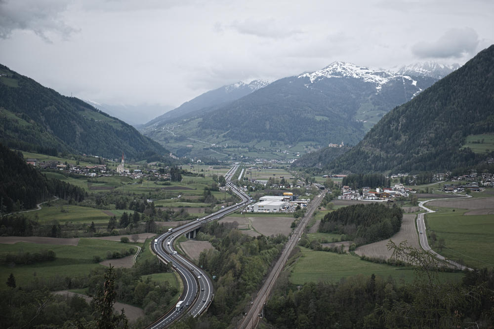 The bike path continued to follow the old railroad line, and we ran straight and true on a path that was like a string pulled tight at two points. The plumb-line nature of our course found its counterpoint in the sinuous curves of the white and black birch trees that stood decoratively on the verge between our path and the Isarco river. Southward, the mountain peaks had buried their heads in the low-lying clouds. A light sprinkle of rain fell sporadically, dusting the lenses of my glasses.
