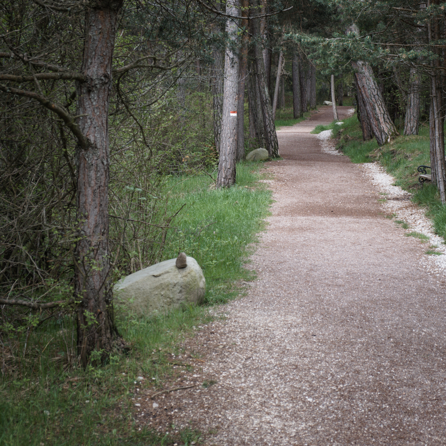 We passed a sign that claimed Bolzano was one hour away. Fine. We crept down the steep rock- and root-strewn trails for twenty minutes and reached another sign which stated, rather improbably, that Bolzano was still one hour away. Twenty minutes of walking and not a minute closer? Something was definitely wrong.