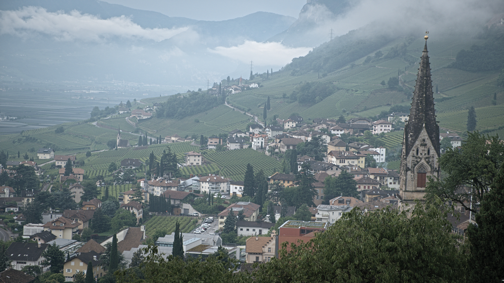 We awoke to the sound of angels bowling in the mountains. Lightning splintered over the high peaks, and the resulting thunder smashed, ricocheted, and echoed in the canyons. On the hillside above us the bells of San Giacomo’s church tolled plaintively. A fell wind drove dark clouds toward Termeno, and within minutes a heavy rain began to fall.