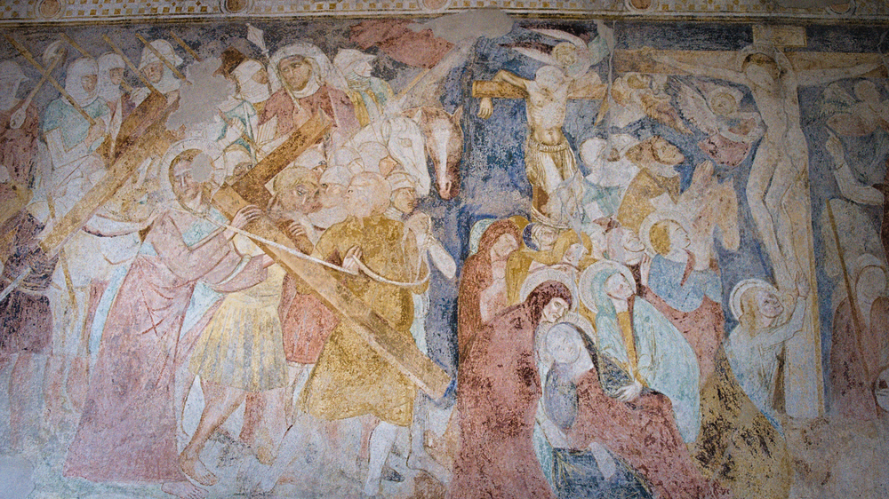 The earliest reference to this church comes from the year 1214. The romanesque frescoes date from the thirteenth century. They are a surrealistic mix of angels, demons, and biblical scenes.