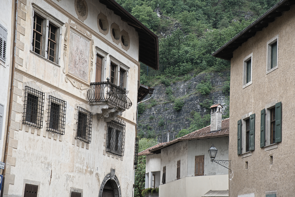 After our recovery period, we took a short walk around Salorno, in advance of dinner. Like some of the other towns we had passed through today, it was a strange mix of older, elegant buildings, and agriculture. I don’t know why I find this so peculiar. I associate beautiful medieval buildings with well-preserved and heavily visited places like Venice or Florence. I always think of farmers as living out in the countryside, among the fields. But here in Salorno, as in Magre earlier in the day, you are just as likely to be run over by a tractor as an automobile. The farmers zip up and down Dr. Josef Noldin street at high speeds, towing trailers or crop sprayers behind their tractors.