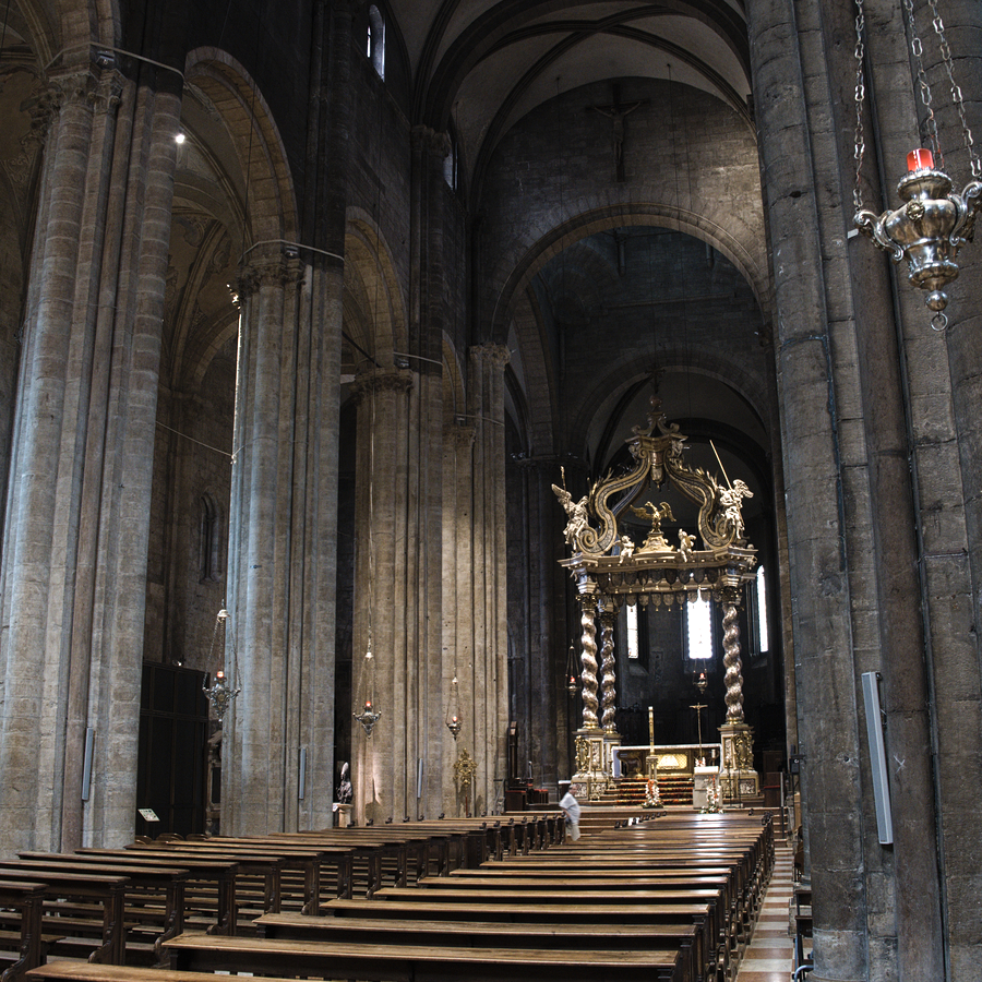 Visitors can go beneath the main floor of the Duomo and view the archaeological remains of the earlier church. Exhibitions include funerary art, a couple of sarcophagi, and some fragments of an ancient Roman mosaic.