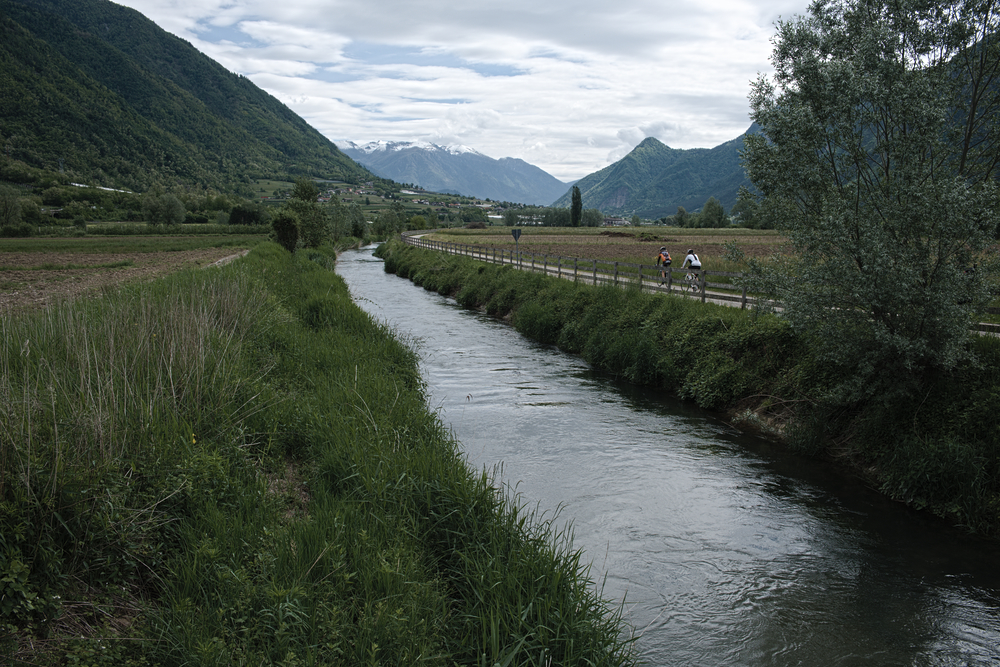 Nothing could have been simpler than today's course: follow the bike path, don't fall into the Rio Brenta. Eventually these sure and certain signs led us to Borgo Valsugana. There were no intermediate towns on the way.
