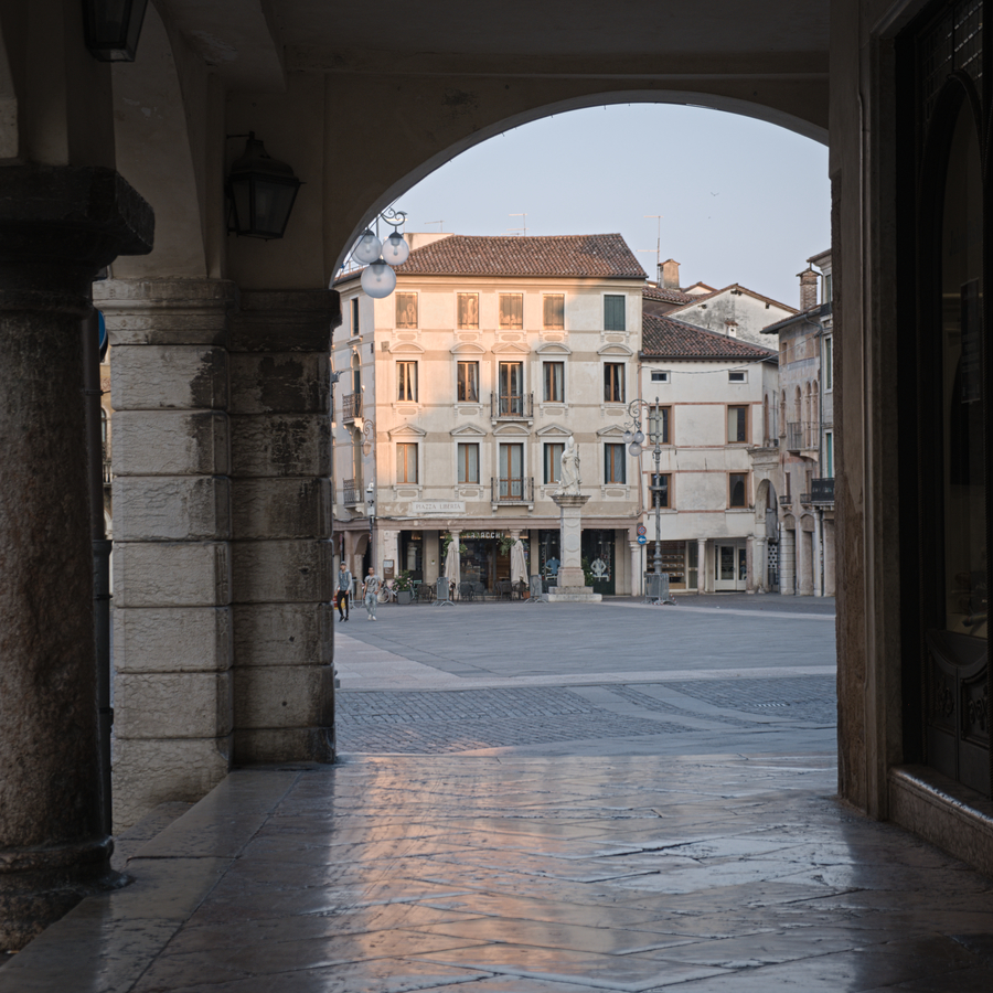 The previous afternoon and evening, the streets of Bassano were swarming with tourists; this morning, the streets were empty. I spent a good hour walking through deserted streets, alleys, and piazze, alone except for pigeons and early morning garbage collectors. I did learn a few important things. For example, it is possible to buy toothpaste made with Grappa, for those who like to start the day with good dental hygiene and a grappa pick-me-up.