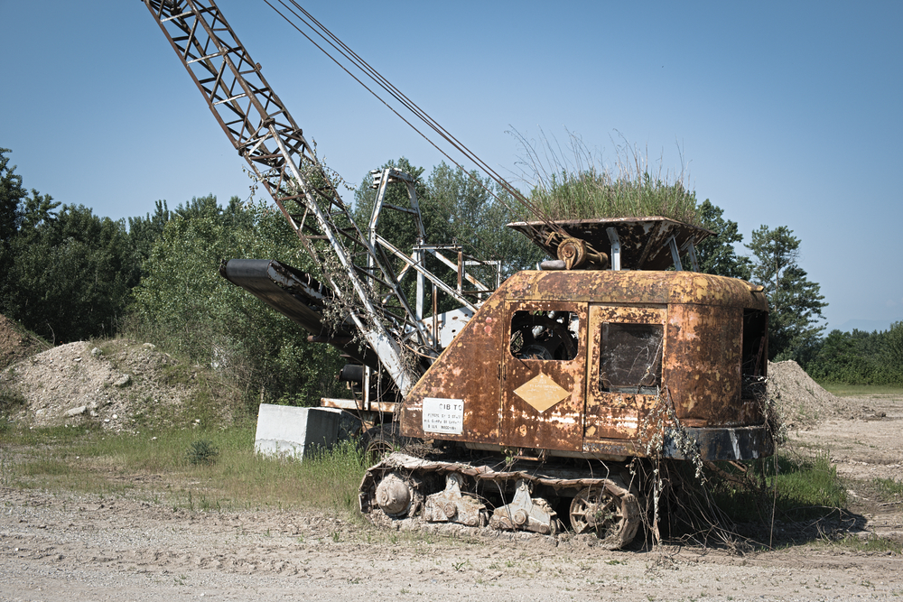 This odd tendency was evident today when we approached a town called Cartigliano. The Via left the Brenta path, and then ran along the edge of town through a sporting complex (were we really supposed to be walking here?) an industrial area, and then we reached an arrow that indicated a sharp right turn though the front gate of a rock quarry.